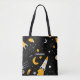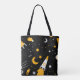 Black Yellow Outer Space Stars Moon Rocket Tote Bag