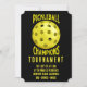 Customise this fun pickleball championship tournament invitation. Design features a yellow pickleball ball illustration with grunge yellow pickleball champions lettering curved around the ball. Followed by customised tournament event, dates, location and additional information for your party!
