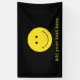 This banner features a yellow and black grinning face on a black background. Personalise the text at the bottom with your own message. Don't forget to smile!