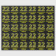 This attention-grabbing, bold, birthday-themed wrapping paper design features a large number "22", with a black and yellow striped pattern. It also features the message "Happy 22nd Birthday,", and a personalised name. The background is coloured black. Wrapping paper like this might be a fun way of wrapping a birthday present or gift being given to somebody who is celebrating their 22nd birthday. [~Z0000381]