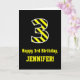Black & Yellow Striped "3"; 3rd Birthday + Name Card