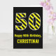 Black & Yellow Striped "50"; 50th Birthday + Name Card