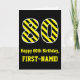 Black & Yellow Striped "80"; 80th Birthday + Name Card
