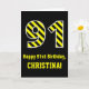 Black & Yellow Striped "91"; 91st Birthday + Name Card