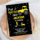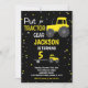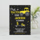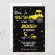 Black Yellow Tractor Birthday Invitations