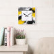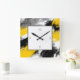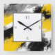 Black Yellow White Modern Abstract Brushstrokes Square Wall Clock