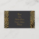 Elegant black and gold zebra stripe with diamond jewel trim black and gold business card.Add your details to the front and/or back by simply choosing the orange "Customise it!" button to begin adding your event details, font style, font size & colour, and wording. Please note - all of the invitation designs you will find on Zazzle are printed graphics on flat paper stock with no actual jewels, bows, raised, embossed, or added parts or pieces.