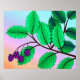 "Blackberries on a Branch" print with border - mixed media graphic design, digitally enhanced vector drawing of blackberry plants against a sunset background