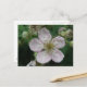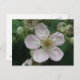 This pretty floral postcard features a photograph of a white blackberry flower. The photo was taken using macro photography for a detailed result. You can see the fine detail like the pink tinge on the white petals.