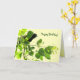 This birthday card features a red-winged blackbird on a branch way up in an aspen tree. He is peeking out from behind the golden green leaves. The sky has a very pale yellow tinge. More blackbirds are inside. The text can be customised to suit your special occasion.