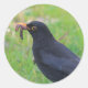 A blackbird taken in the spring time as he collects worms for the young in his nest.