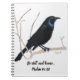 This is a Spiral Notebook with an image of a blackbird drawn in Coloured Pencil and includes an inspirational verse.