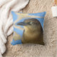 Add the intense stare of concentration to your home with this throw pillow featuring a female blackbird gazing into the distance. This nature photo captures her beautiful yellow eye and her brown feathers that stand out against the light blue water in the background. The back of this pillow features a matching blue solid colour.