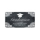 Graduation party invitation address label. Black chalk board background and white lace decor.