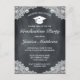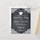 Graduation invitation postcard. Black chalk board background and white lace decor.