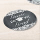 Blackboard & White Lace Grats Graduation Round Paper Coaster