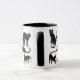 Original fine art design of black cats in different poses by designer Carolyn McFann printed on a quality coffee mug for cat lovers. It is a great Halloween mug too.