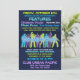 A fun and electric invitation or flyer for a black light party, also known as a glow in the dark, neon or rave party. Fun for any sort of birthday dance party or can be used as a club flyer.