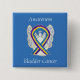 Bladder Cancer awareness cause uses a blue, marigold and purple ribbon. The awareness ribbon pin features the painting of a blue, marigold and purple awareness ribbon angel on a custom button pendant. The awareness angel pendant notes "Bladder Cancer Awareness". The blue, marigold and purple awareness angel ribbon art lapel pins or buttons can be customised with personalised messages to make great cause buttons for fundraiser pendants, awareness pin gifts, or other special pendant events or awareness lapel pin for the cause's occasions.