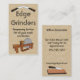 Double sided card with Grinding Wheel and Crossed Knives on one side and a Sharpening Stone on the other. Background colour is an aged parchment looking pattern.