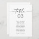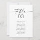 This table number seating chart features a boho handwritten script font and modern minimalist design. Easily change the number and the names along with all of the colours to fully match your event.