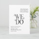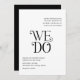 Modern wedding invitation featuring a minimal layout with "We Do" in bold typography in the middle. All design elements are in black and white and may be changed in the design editing tool. This simple yet elegant wedding invitation is great for an informal or formal wedding.