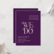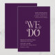 Modern wedding invitation featuring a minimal layout with "We Do" in bold typography in the middle. All design elements are in plum purple and ivory and may be changed in the design editing tool. This simple yet elegant wedding invitation is great for an informal or formal wedding.