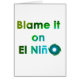 Got problems? Need a scapegoat? Blame El Nino! When Mother Nature attacks with tornados, hurricanes, drought, and winter storms, meteorologists look to the Pacific ocean and blame El Nino - why can't you? Great tongue-in-cheek eco design for Earth Day, climate change, girlfriend/boyfriend problems, and for that special weatherman in your life.