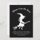 A spooky witch flying on a broomstick and the fun saying, Blame it on the Boos, accents this Halloween Costume Party Invitation on a black background, making this invitation perfect for the Adult Halloween Party.