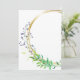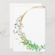 This is a blank wedding invitation for you to customize; it features a floral spray, leaves and golden circular sweep