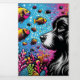 This design was inspired by Pop Art & my Kokoni Rescue dog, Truffle. This AI GENERATED image was of him looking at the fish in our tank.
