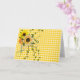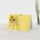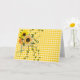 Yellow sunflower bouquet with ivy and lady bug on gingham quilt background for blank note card