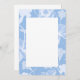 This modern wedding invitation has a border in shades of blue and white featuring a floral pattern, this is a larger and bolder version of another of our designs