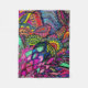 Hummingbird Close-up Zen Tangle Pattern Art by Michele Zurine. Bright and colourful line art. Fleece blanket throw in Lime Green, Aqua Blue, Yellow, Orange, Hot Pink, Purple, and Vivid Blue. Add photos or a name to customise yourself. Custom Birthday, Congratulations or Any Day, Cheery, Happy, fun and festive.