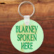 This funny St. Patrick's Day design features the caption "Blarney Spoken Here" on a green shamrock background.