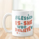 Blassed Is She Who believe scripture mug Faith