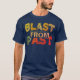 The t-shirt design bursts with a vibrant celebration of the past with the phrase "Blast from Past" displayed in a mix of multicolored fancy fonts. Imagine some letters with a bold, almost comic book style, while others might have a retro, almost neon glow. The colour palette is energetic and playful, reflecting the exciting and unexpected nature of rediscovering the past. This combination of typography and colour perfectly captures the thrill of a trip down memory lane.