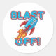 Blast Off Rocket Ship Classic Round Sticker