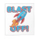 Our Blast Off design is a great design for kids of all ages who love space and rocket ships, features a blue and red rocket ship with flaming exhaust and text that reads Blast Off! Blast Off rocket ship T-shirts, bibs, blankets, cards, stickers, mugs, bags, pillows, wall clocks, and much more!