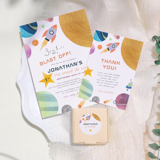 Blast Off! Trip Around The Sun Boy Birthday Photo Invitation