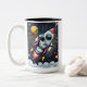 A retro-style rocket ship blasts off into a colourful, starry cosmos. It's playfully designed with big eyes and a friendly face, adding a touch of whimsy to the scene. The rocket's fiery exhaust trail and the vibrant planets in the background create a sense of dynamic movement and adventure.