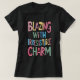 A colourful graphic design with the words Blazing With Irresistible Charm in a bold, playful style. Each letter is outlined in black and filled with different colours. The design is perfect for use on social media,