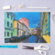 Devyatkin (ninth) lane of Moscow. Just short lane in the historic centre of the city. Nothing special, except colours. Ah, distinctly I remember, it was in the bleak December. Gloomy December day was brightened by the walls of old buildings. I used canvas texture to add some velvetiness to this cityscape.