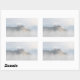Rectangular photo sticker of historic Bled castle, built upon the rocks along Lake Bled, surrounded by clouds and ground fog, like it is a castle built in the sky, in Bled, Slovenia.
