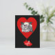 Skull and crossbones grows from centre of a rose against a red heart dripping blood and a butterfly growing from the pool.