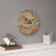 Bring the high-energy serenity of a wildflower meadow into your living space with the Bless This Home Meadow Butterfly clock. This elegant timepiece features a stunning high-definition graphic set against a beautifully weathered, warm wood-plank background. The right side of the face is adorned with a lush vertical spray of vibrant flora, including bright orange poppies, sunny yellow coneflowers, and delicate stalks of purple lavender. A majestic monarch butterfly and a busy bumblebee are captured mid-flight, adding a touch of lifelike movement to the scene. The left side features the heartwarming "Bless This Home" script in a graceful, flowing font. While the artwork masterfully captures the organic textures of aged timber and delicate petals, this is a durable high-definition graphic application on a premium clock face. It is a prestigious and welcoming centerpiece for any home.