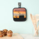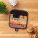 Safely handle baking trays, cookie sheets and muffin tins from the oven with this pot holder with black trim that features the photographic image of a dark silhouette of a house against a colourful sunset lit sky along with a house blessing printed in black lettering. Select your pot holder backing style. Makes a great gift for the kitchen!