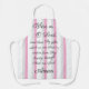 A chef's apron with a pink and grey striped background. A unique gift for special cooking or grilling days such as a birthday, holiday or Sunday dinner for the family.
