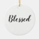 Blessed black white custom script cute Christmas Ceramic Ornament