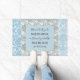 Show your faith, and hospitality with this beautiful Farmhouse Chic doormat covered with blue damask background, subtle sepia- toned damask glitter and lace overlay. Quote from Deuteronomy 28:6 says "Blessed shall you be WHEN YOU COME IN and blessed you shall be WHEN YOU GO OUT"